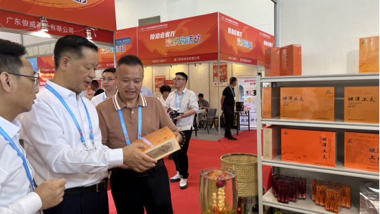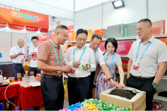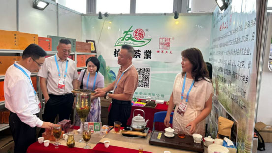 我公司精制茶产品亮相展会,吸引众多客商驻足品鉴、洽谈咨询。宁德市市长潘国强、福安市市长黄其山,市领导薛树明、连坚到展馆参观。