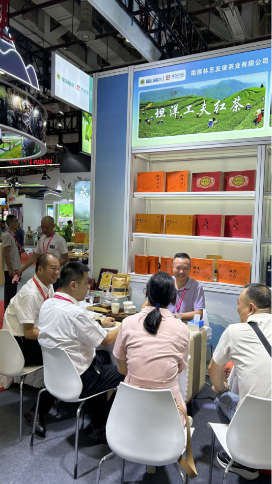 福建省绿色食品发展中心组织全省多地参展,我公司携匠心产品--坦洋工夫精彩亮相,成为展会一大亮点。展会期间,福建省绿色食品发展中心曾晓勇主任、宁德市农业农村局四级调研员程端春、宁德市绿色食品发展中心黄锐斌主任与董事长林芝华进行了深入交流。全面了解掌握我司绿色食品高质量创新发展等方面的经验做法及遇到的问题,对今后发展绿色优质农产品提出宝贵建议,并对我司绿色优质农产品高质量创新发展工作给予充分肯定!