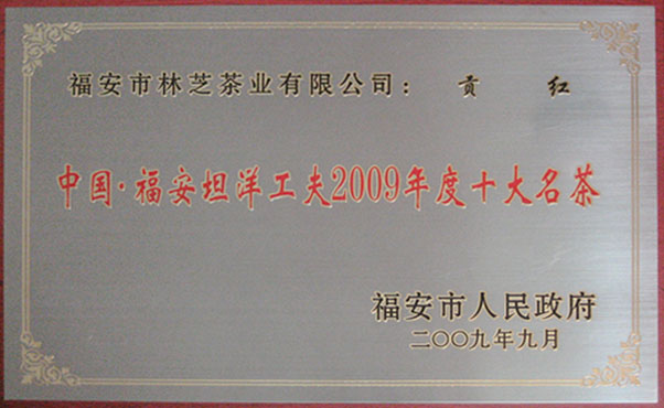 Title:2009年度“贡红”荣获中国·福安坦洋工夫“十大名茶”称号
