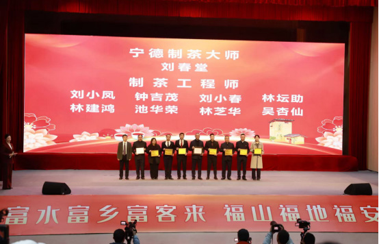 会上,市人大常委会主任詹廷平解读《茶产业提质升级指导意见(2026—2030年)》;茶界代表分享一线发展经验。现场还为坦洋工夫茶制作技艺国家级、省级非遗传承人,福安市级非遗传承人,中国制茶大师、中国制茶能手,宁德制茶大师、制茶工程师,省级技能大师工作室以及福建省科技进步奖三等奖获得者颁发奖项与证书。
